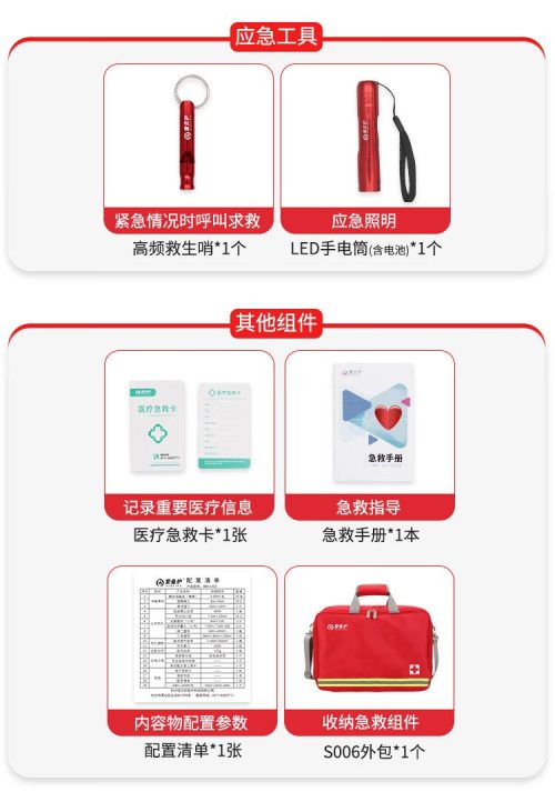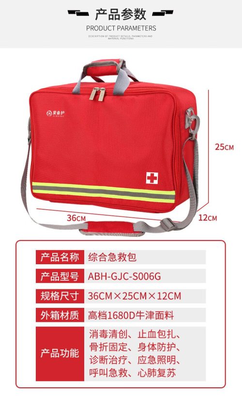 商品名称:爱备护 综合急救包 ABH-GJC-S006G 含31种168件急救用品 单位:套