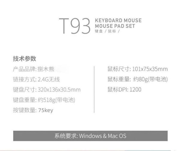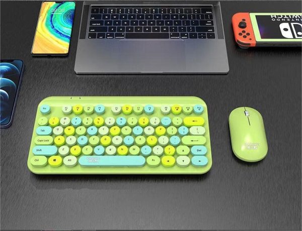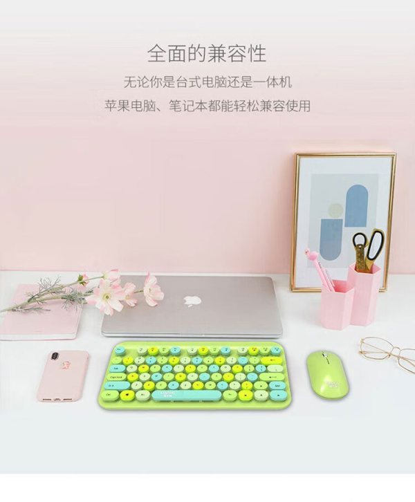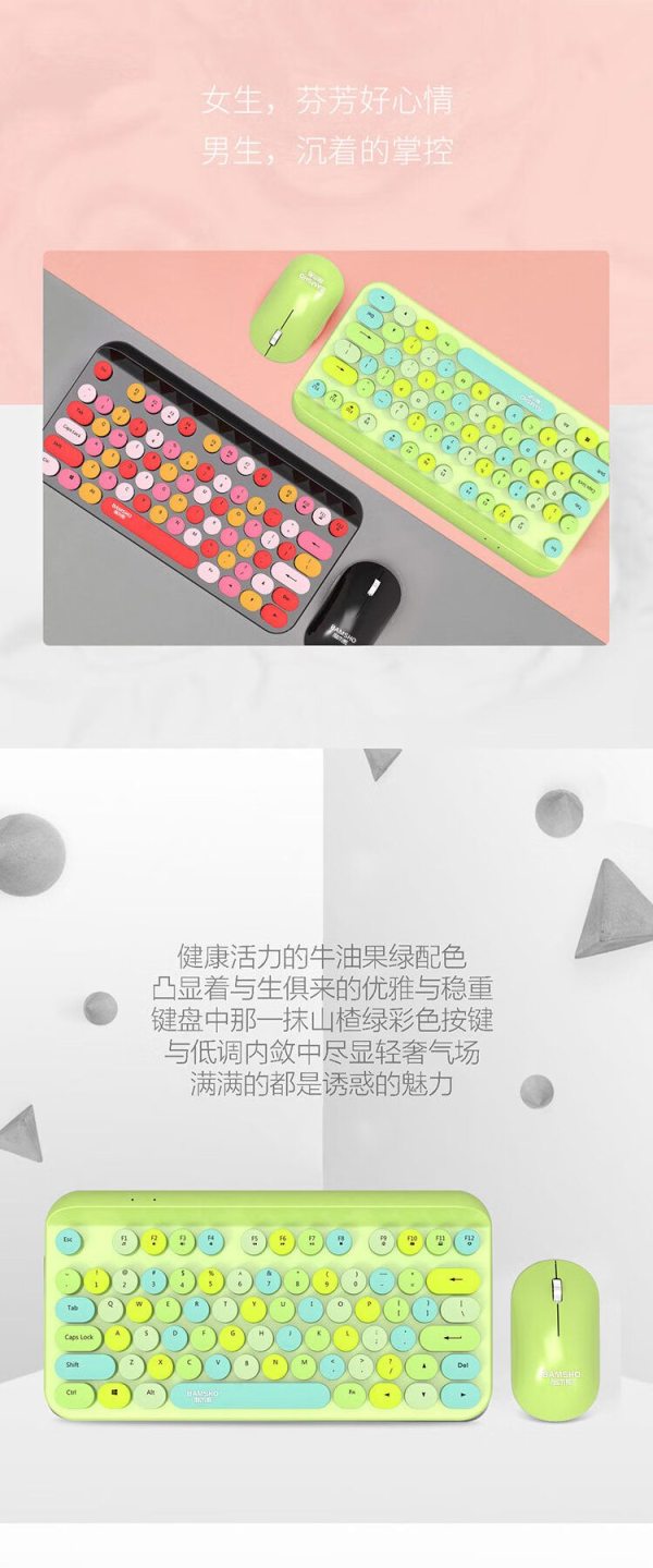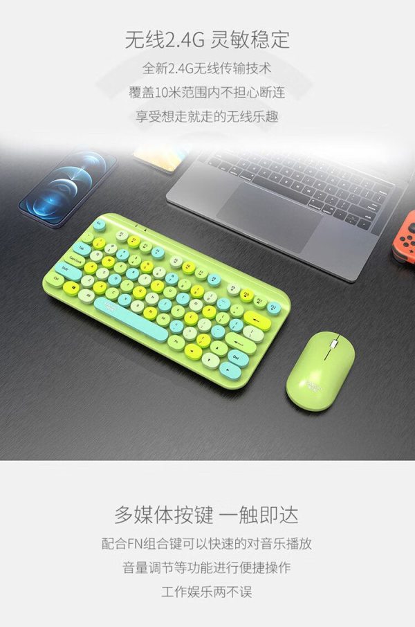 商品名称:捌木熊 T93 可爱朋克复古绿色混采无线键盘鼠标套装(单位:套)