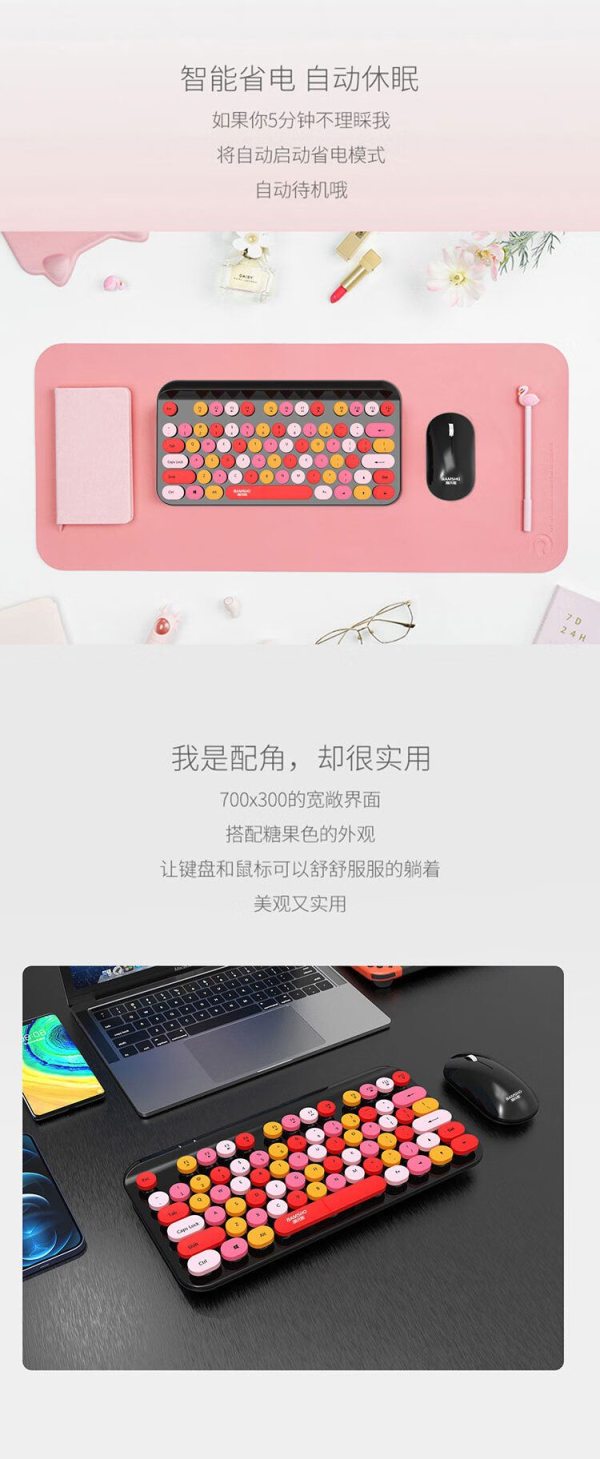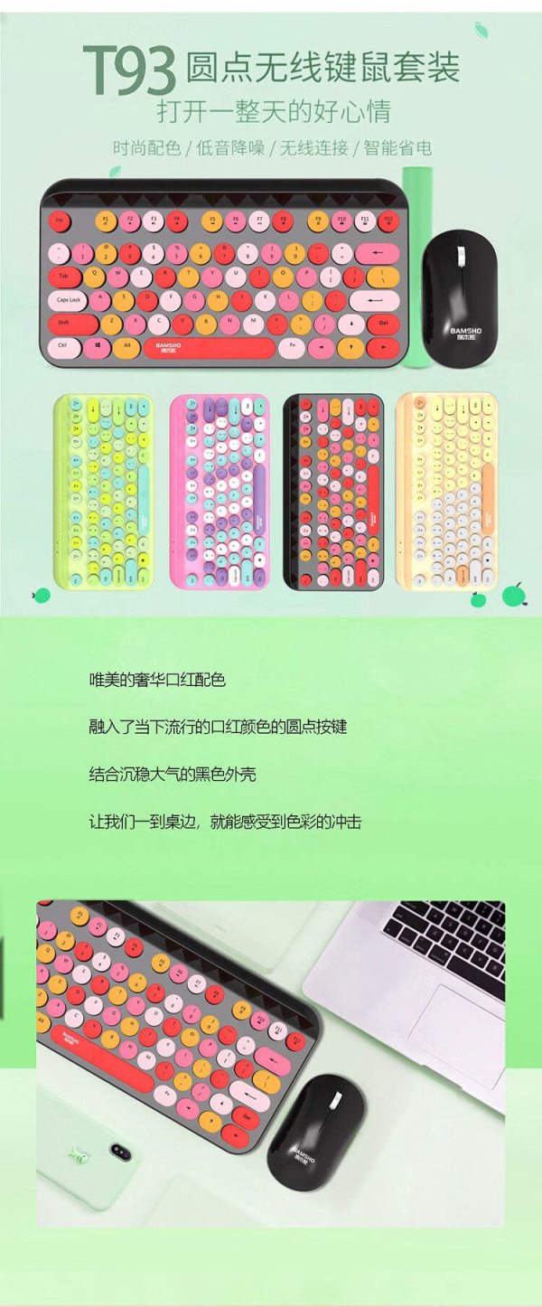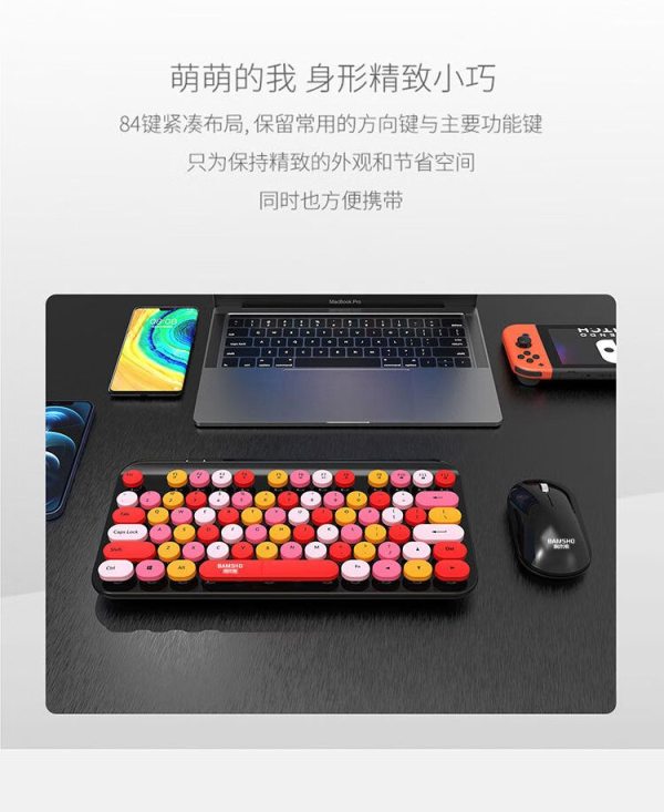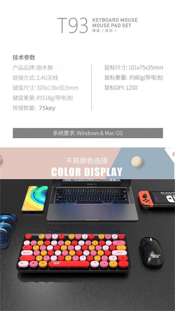 商品名称:捌木熊 T93 可爱朋克复古红色混采无线键盘鼠标套装(单位:套)