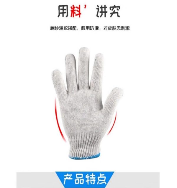 商品名称:安佑全 棉线劳保工作防护手套 普棉蓝边 KM-3016 长21*宽10cm(24双装) 白色 均码