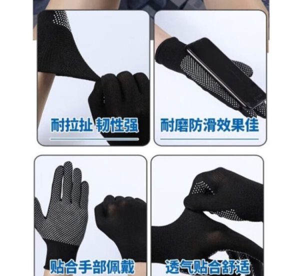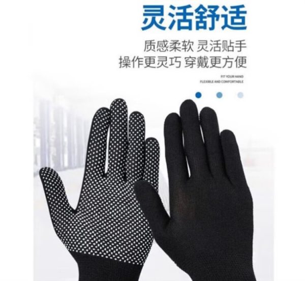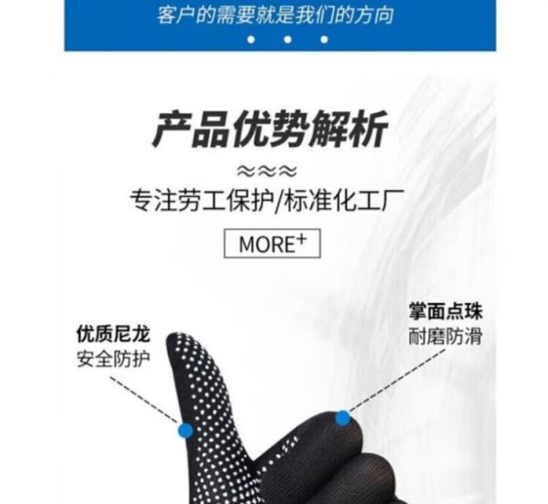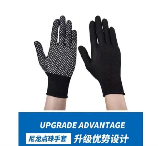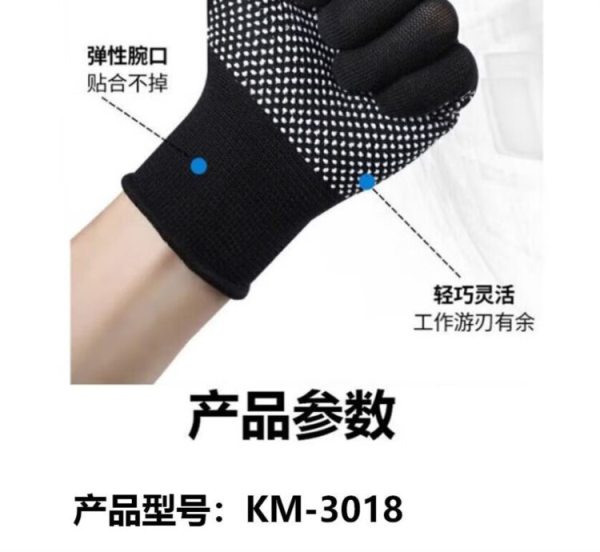 商品名称:安佑全 尼龙点珠防滑劳保手套 黑色尼龙点珠KM-3018 长度20cm宽9cm ( 60双/包)