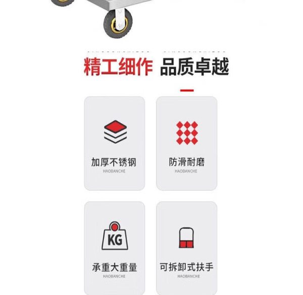 商品名称:宽迈 不锈钢手推车平板车搬运车推货车万向轮手拉车 KM-4067 120*80*90cm刹车款
