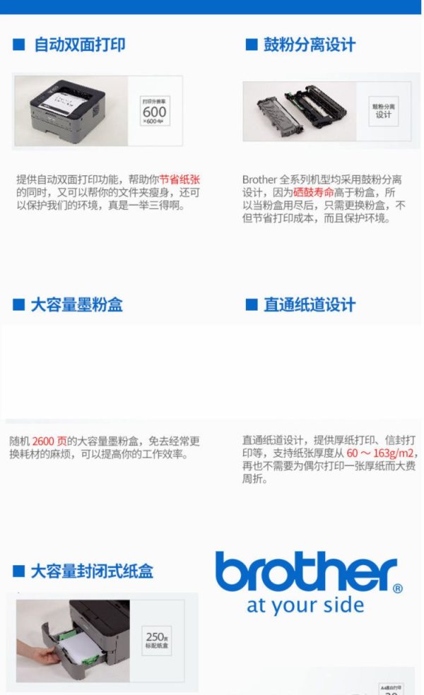 兄弟(brother) HL-2260D A4 双面 单打印 黑白激光打印机 (计价单位:台)