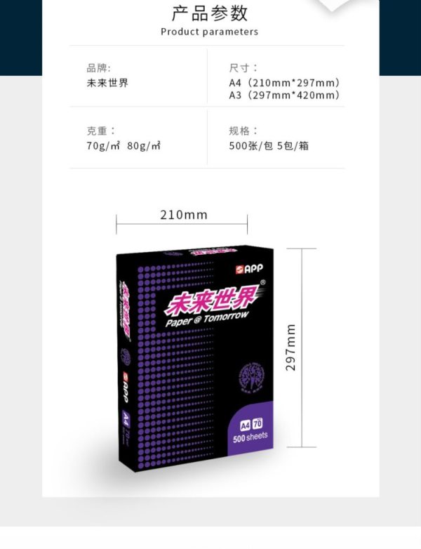 商品名称:未来世界 A4-80g-500张/包-5包/箱 复印纸 (计价单位:箱)-广东/贵州/海南专卖