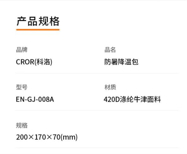 商品名称:科洛 防暑降温包 EN-GJ-008A 200*170*70mm(单位:套)