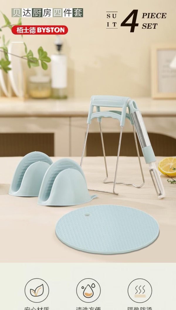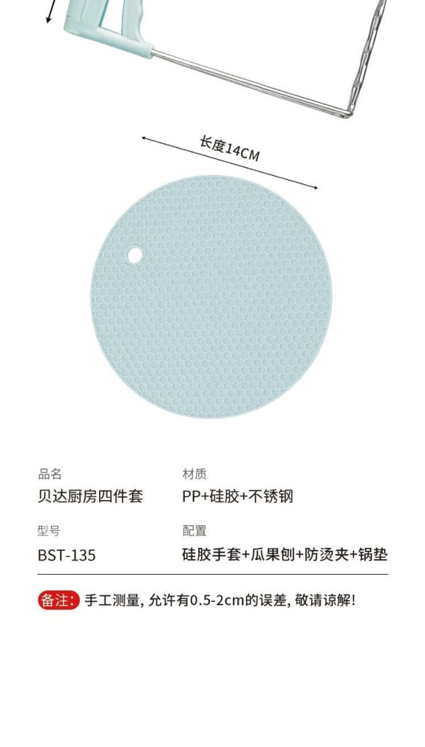 商品名称:栢士德(BYSTON) BST-135 贝达厨房四件套 防烫盘夹+多用瓜果刨+防烫手套+防烫锅垫 (计价单位:套)