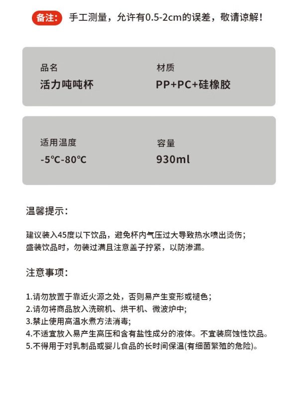商品名称:栢士德(BYSTON) BST-162 吨吨杯 930ML (计价单位:个)