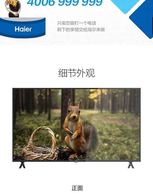 商品名称:海尔(Haier) H65E17 65寸 电视机 1.00 个/台 (计价单位:台) 黑色