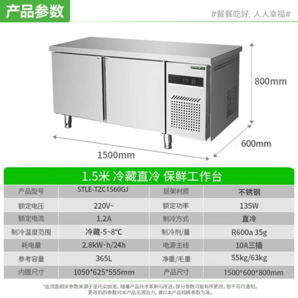 商品名称:圣托 STLE-TZC1560GJ 冷藏工作台(1500*600*800mm/标准款直冷1~10℃)