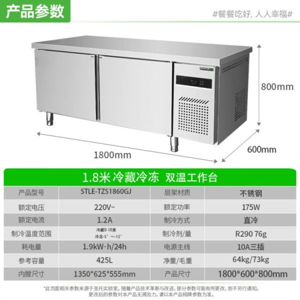 商品名称:圣托 STLE-TZS1860GJ 双温工作台(1800*600*800mm/标准款直冷1~10℃/≤-15℃)