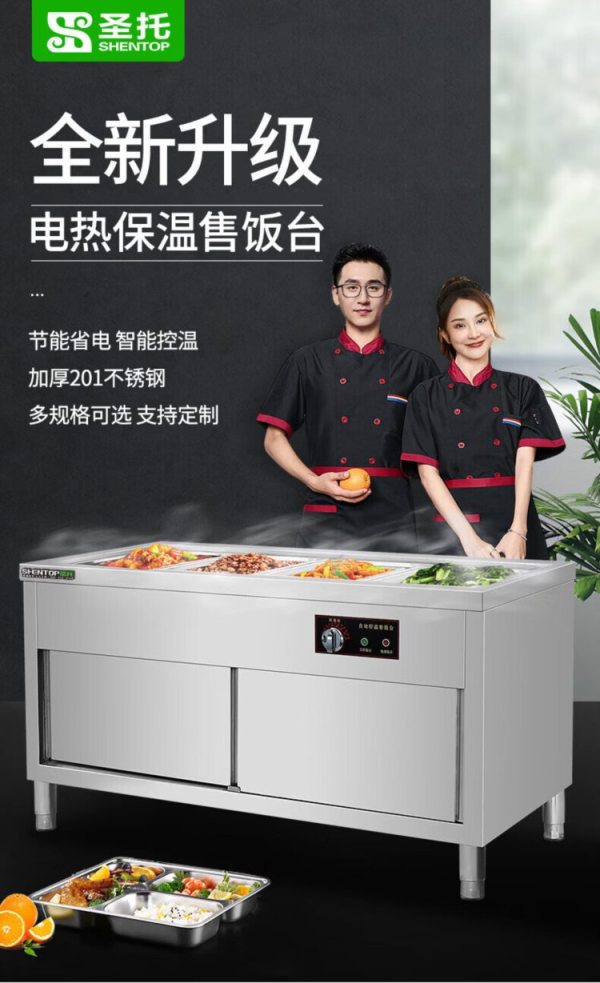商品名称:圣托 STTH-FG5GJ 保温售饭台(五格柜式含1/1份数盘带盖)