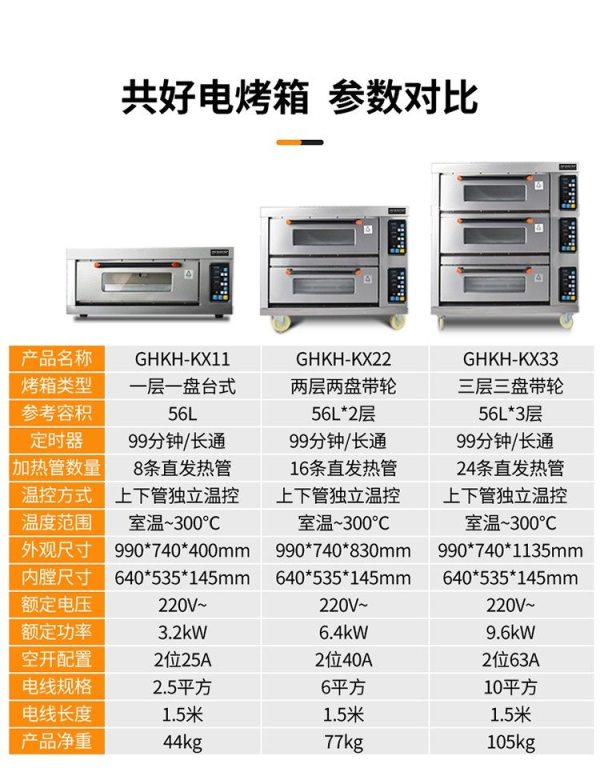 商品名称:共好大型商用电烤箱大容量智能三层三盘烘烤炉烧烤机GHKH-KX33