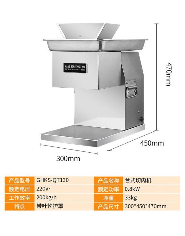 商品名称:共好 GHKS-QT130 多功能台式切肉机 带叶轮护罩 220V 功率800W 工作效率200kg/h
