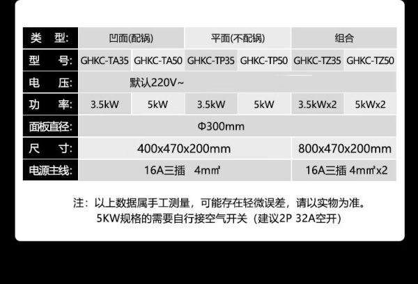 商品名称:共好商用电磁炉3500W凹面电磁灶大功率5kW平面组合炉 5kW平面款电磁炉GHKC-TP50