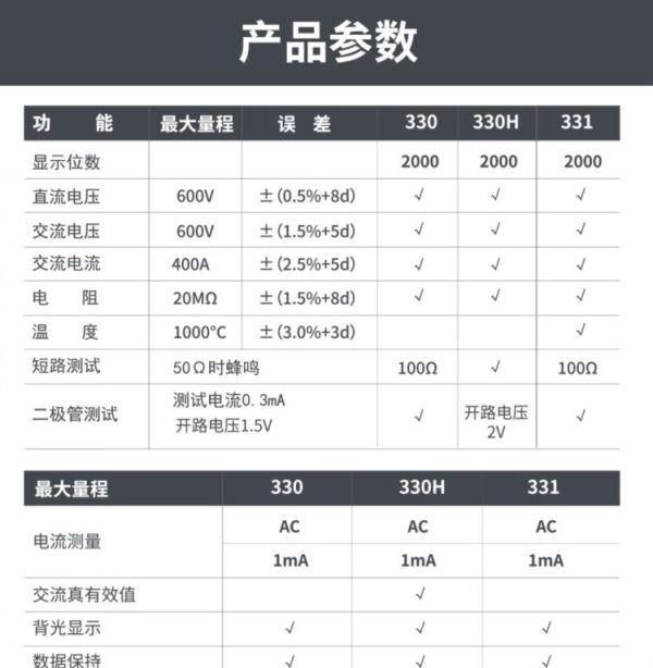 商品名称:华盛昌 NH-330H 600V/400A 钳形表 (计价单位: 台 )