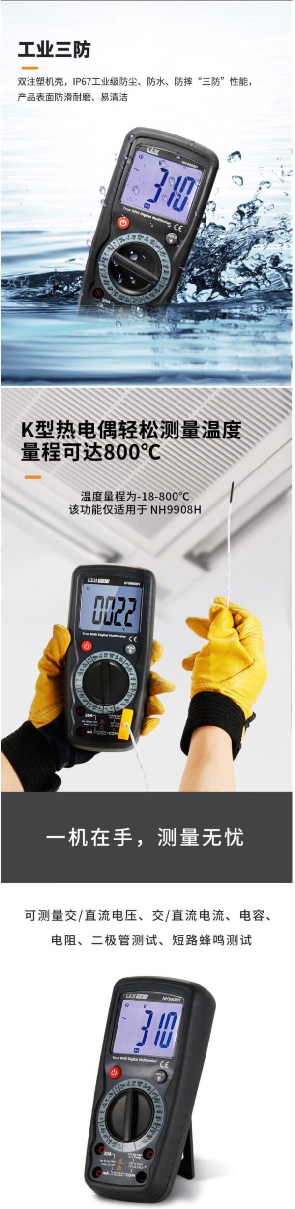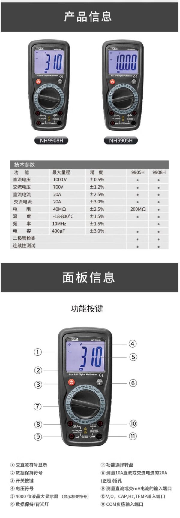 商品名称:华盛昌 NH-9905H 直流1000V/交流750V 高精度数字万用表 (计价单位: 台 )