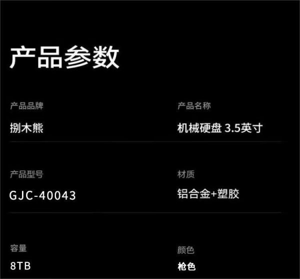 商品名称:捌木熊 GJC-40043 移动机械硬盘 3.5英寸 8TB (单位:个)