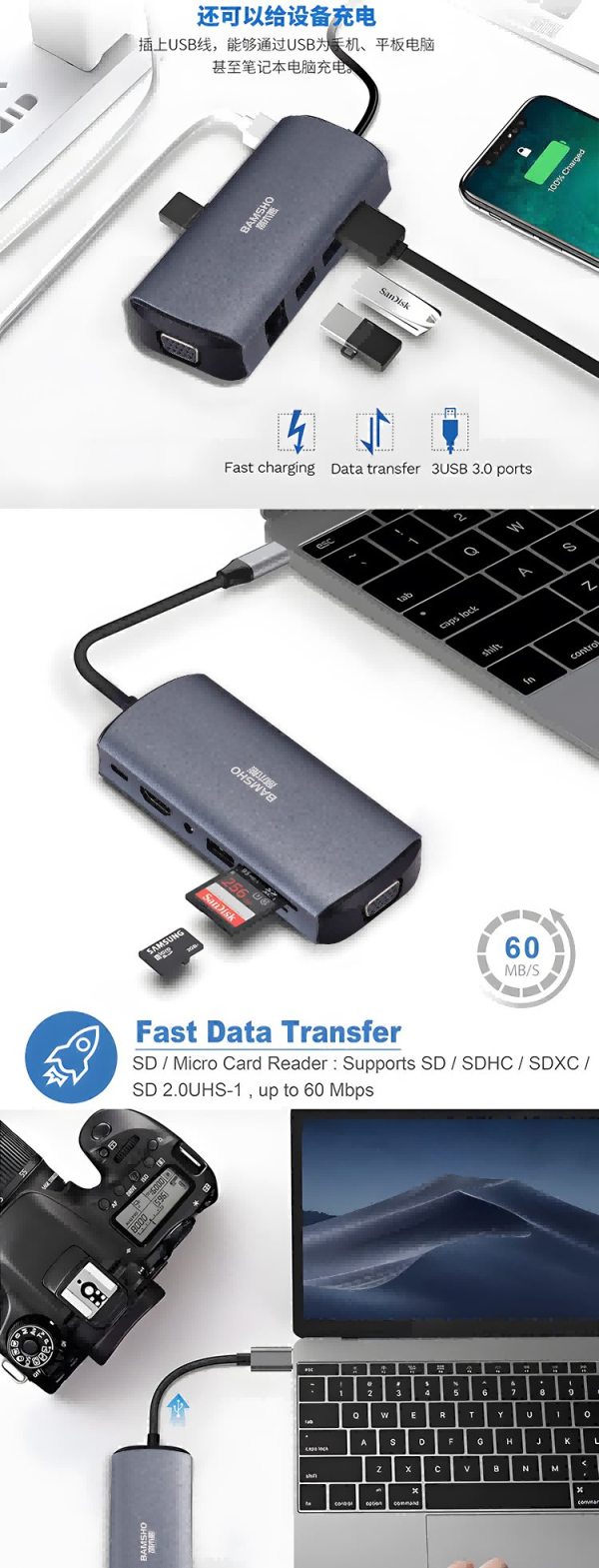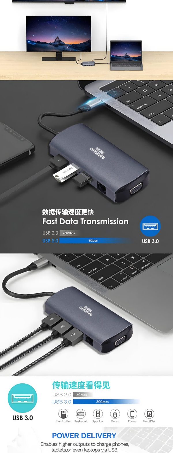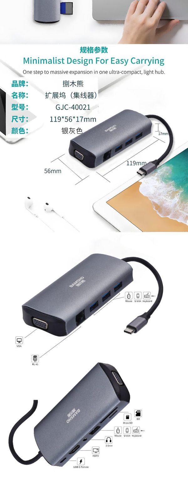 商品名称:捌木熊 GJC-40021 扩展坞(集线器)11合一 119*56*17mm 银灰色 (单位:个)