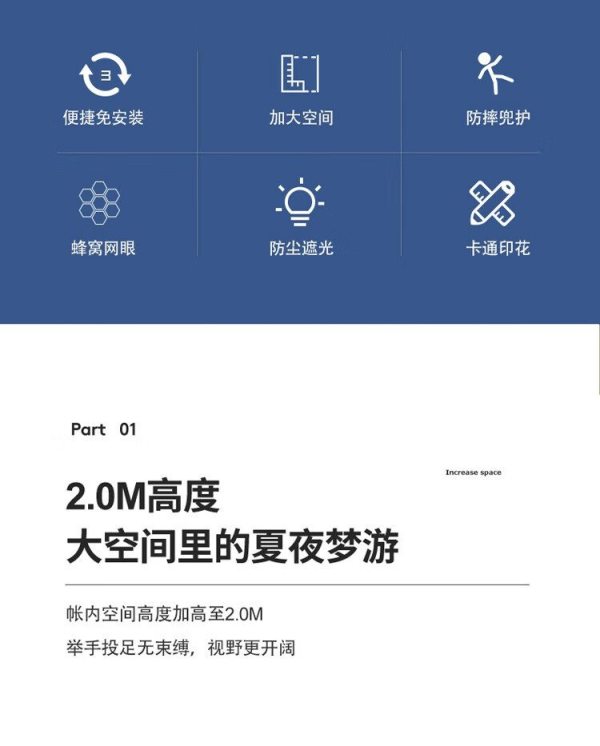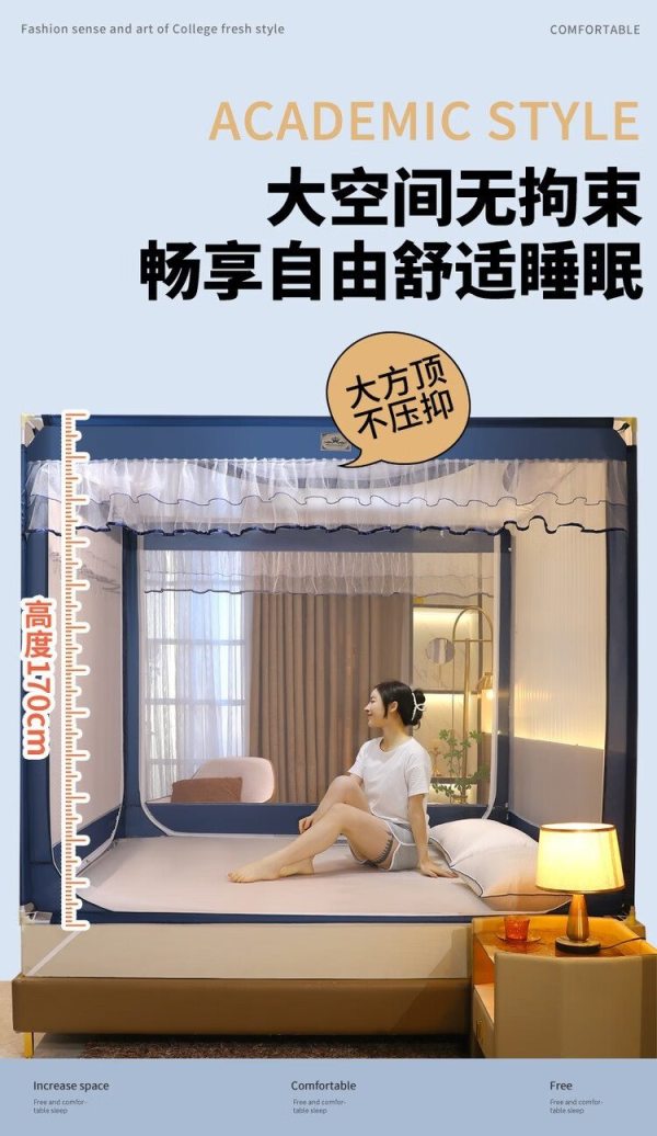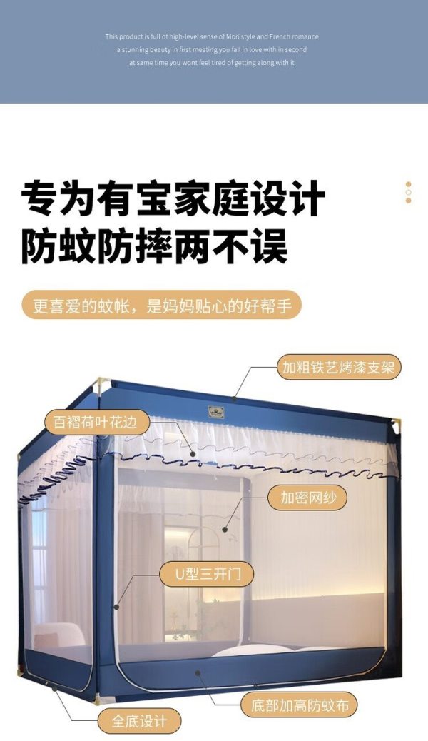 商品名称:自然巢 大方顶钢丝免安装蚊帐 150*200 cm