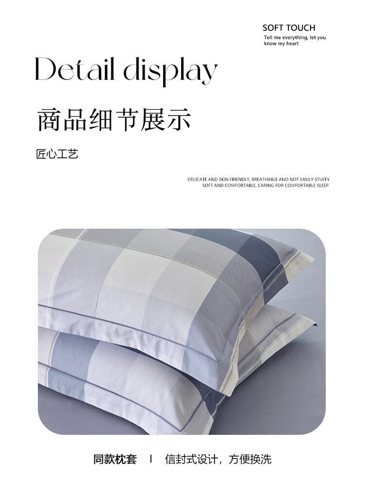 自然巢 全棉色织水洗棉四件套 1.8米/2米(被套220*240 cm)