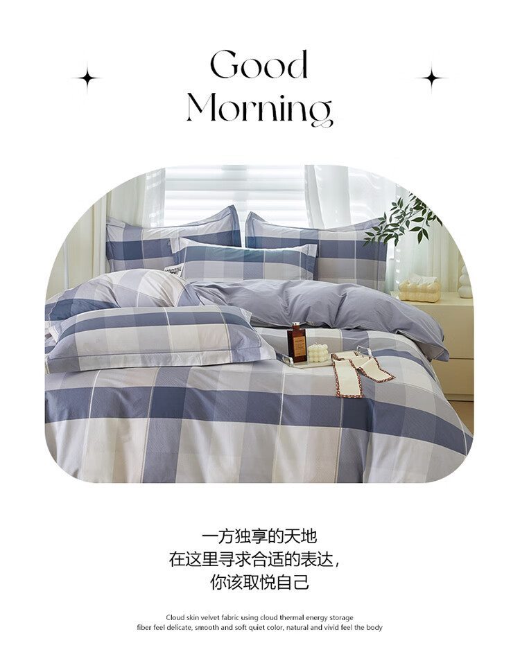 自然巢 100支刺绣宽边长绒棉四件套 1.8米/2米(被套220*240 cm)