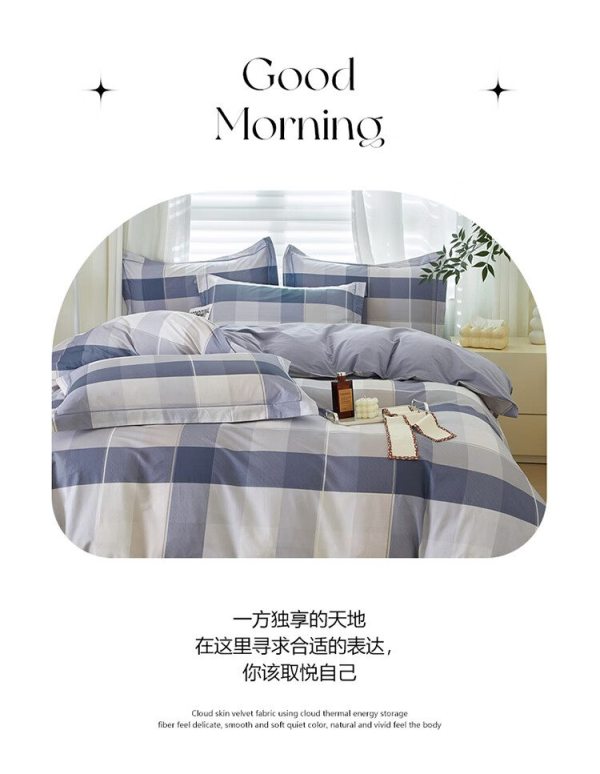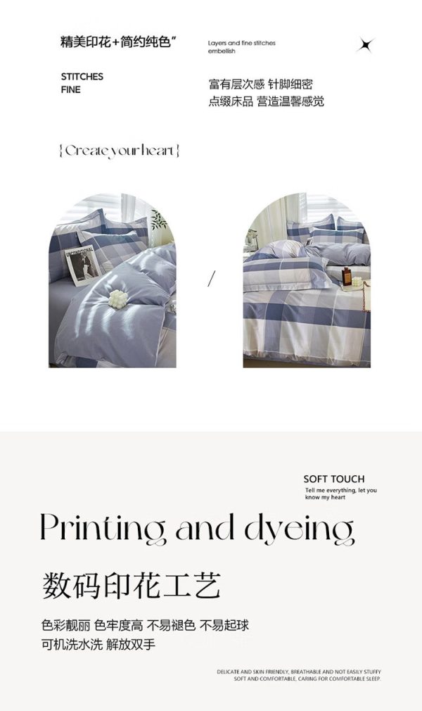 自然巢 100支刺绣宽边长绒棉四件套 1.5米/1.8米(被套200*230 cm)