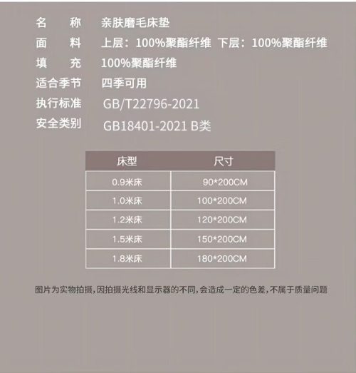 商品名称:自然巢 磨毛床护垫防滑垫可折叠 90*200cm