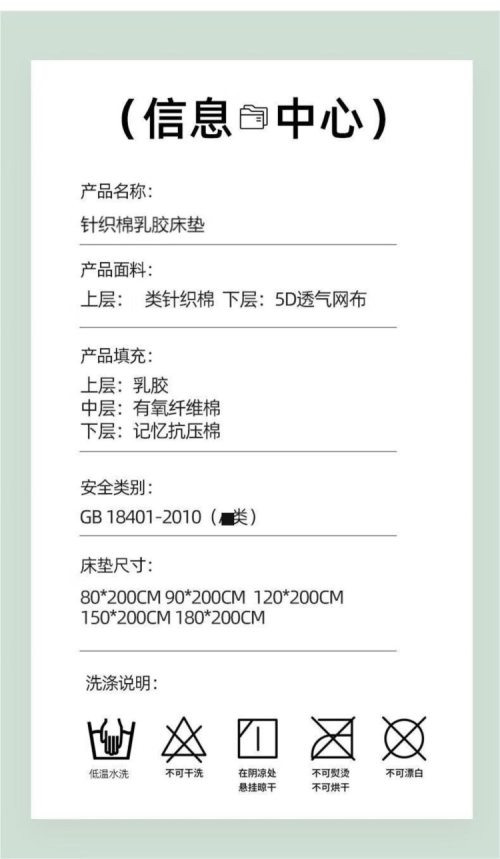 商品名称:自然巢 针织乳胶抗菌床垫 150*200cm