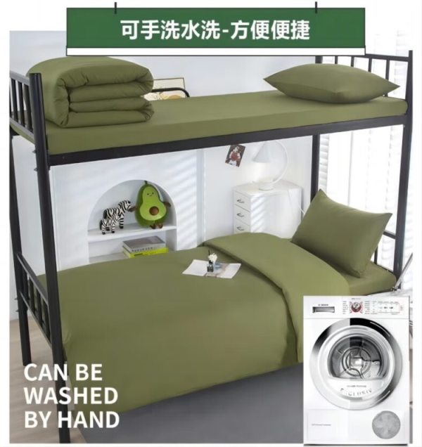 商品名称:自然巢 军绿色套件被褥套装 五件套(三件套+被芯+枕芯)