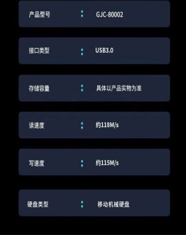 商品名称:捌木熊 GJC-80002 移动机械硬盘 2.5英寸 1TB (单位:个)