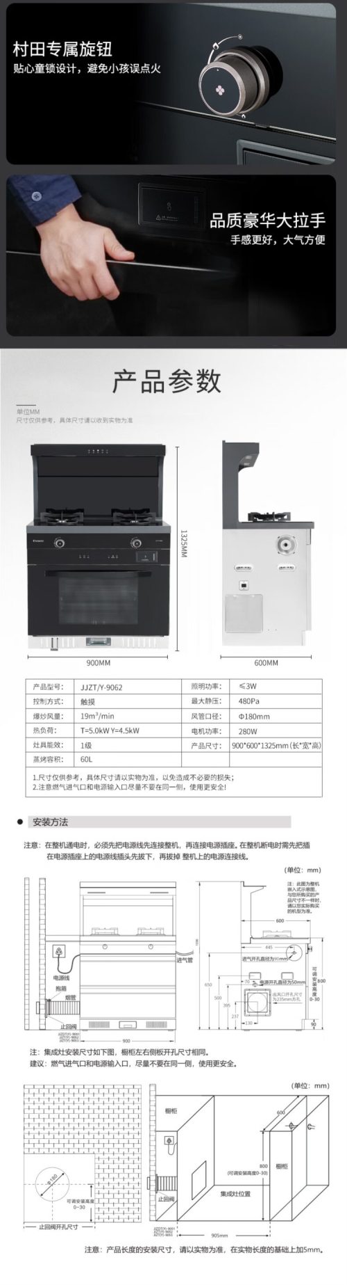 商品名称:村田(citin) JJZT/Y-9062 集成灶 天然气(计价单位:台)