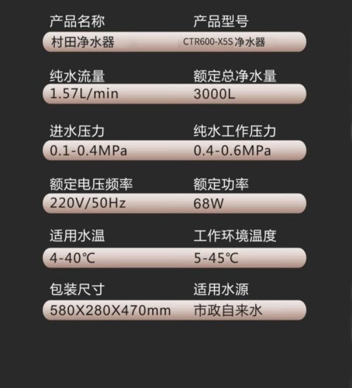 商品名称:村田(citin) CTR600-X5S 净水器 (计价单位:台)