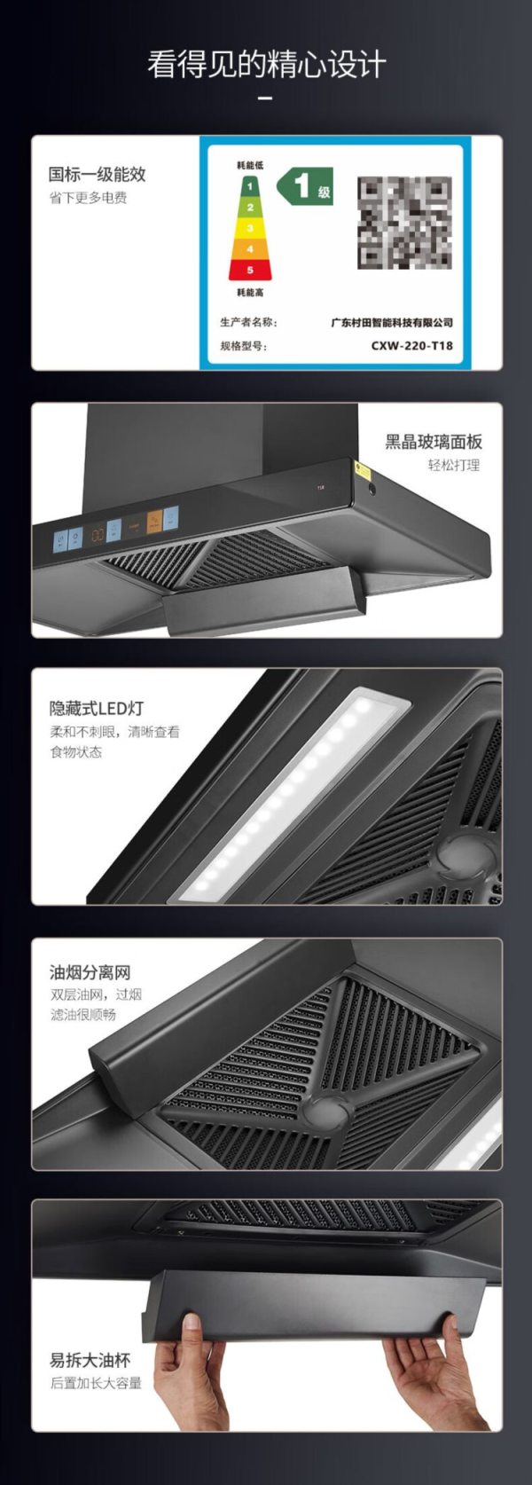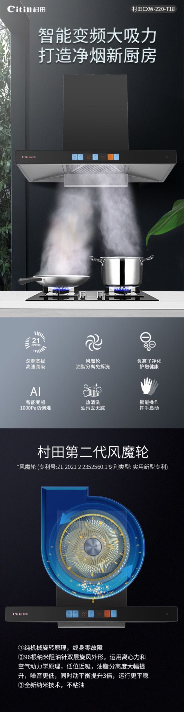 商品名称:村田(citin) CXW-220-T18 抽油烟机 (计价单位:台)