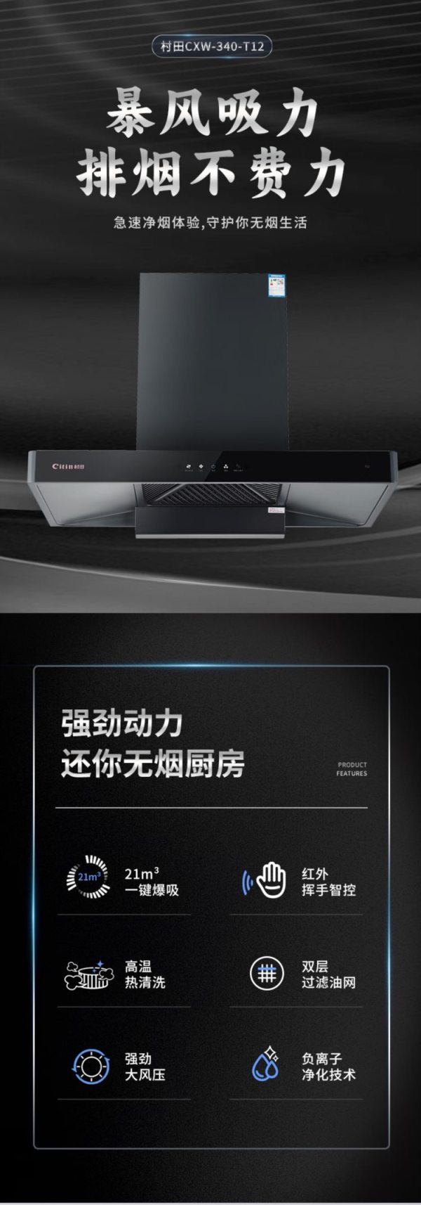 商品名称:村田(citin) CXW-340-T12 抽油烟机 (计价单位:台)