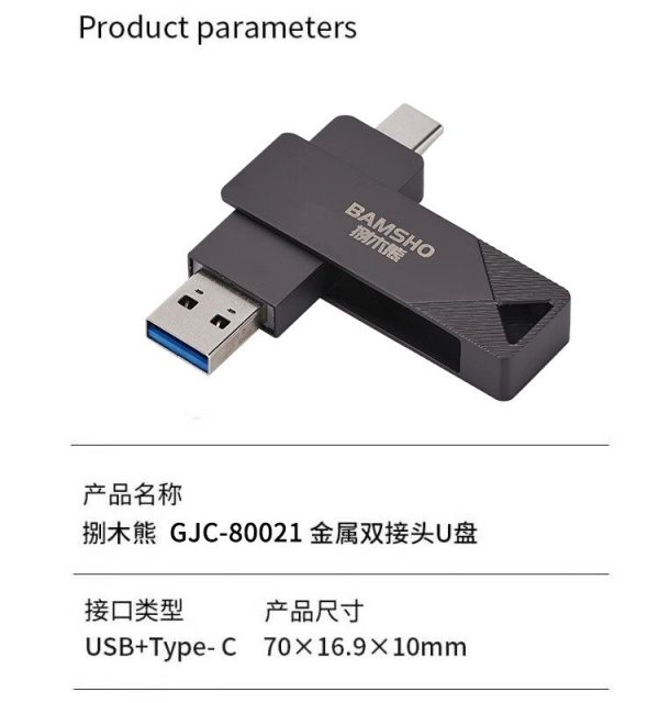商品名称:捌木熊 GJC-80021 金属双接口大容量U盘 256G 单位(个)