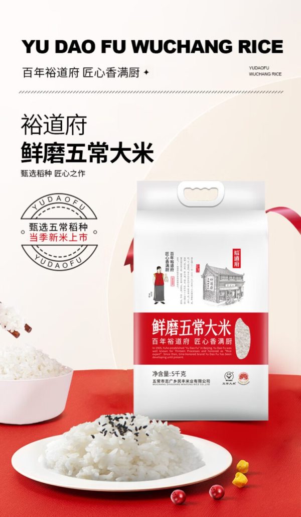 商品名称:裕道府(匠心系列)生态东北大米(单层袋真空装)1kg