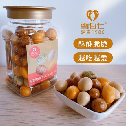 商品名称:雪白仁 果礼小方罐多彩鱼皮花生150g