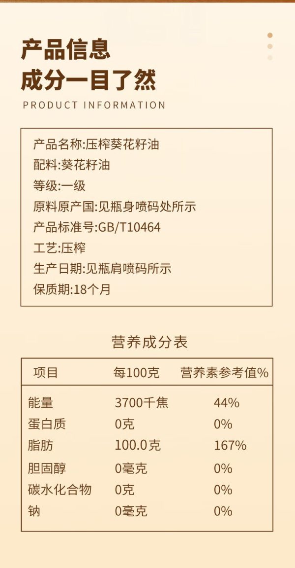 商品名称:中油品香 压榨葵花籽油5L(计价单位:瓶)