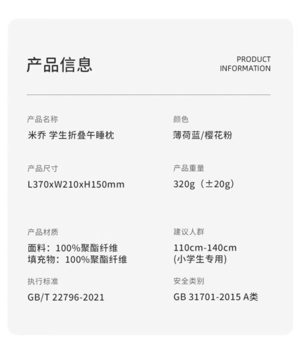 商品名称:米乔学生折叠午睡枕(升级版)P-012 蓝色