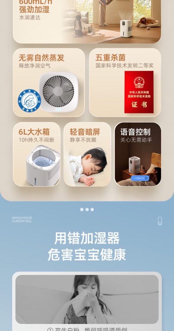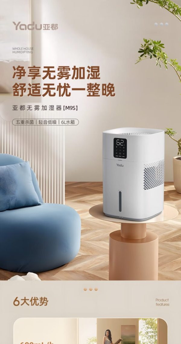 商品名称:亚都SZ650-M9S无雾加湿器 白色