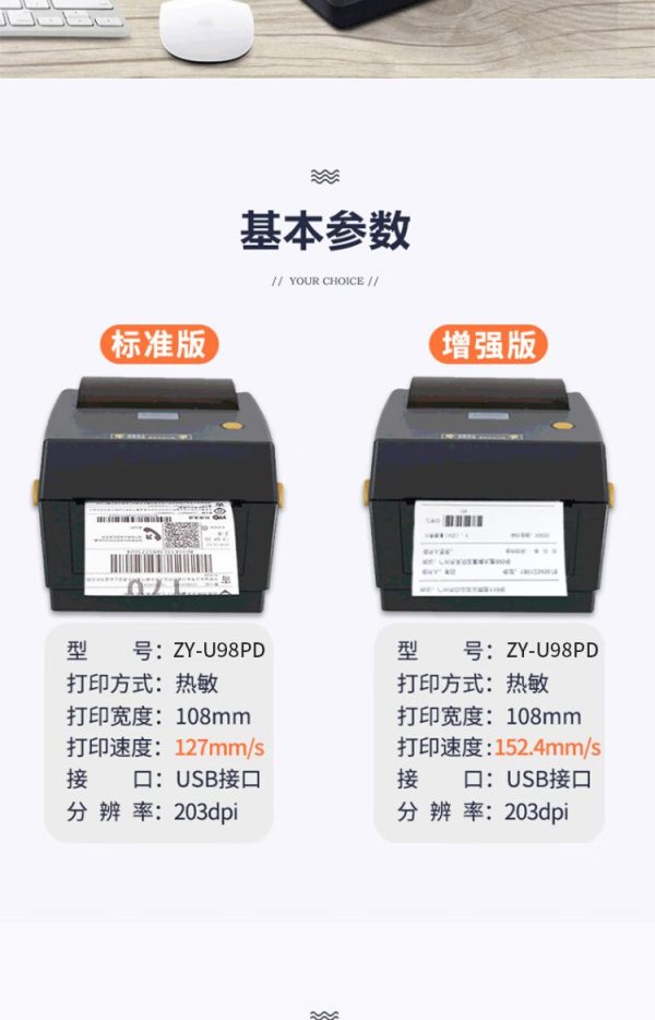 商品名称:标拓(biaotop)ZY-U98PD4寸热敏条码打印机