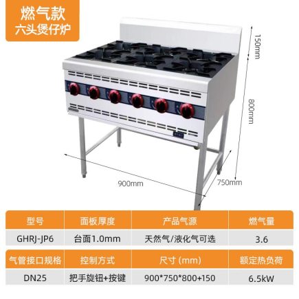 商品名称:共好燃气煲仔炉(六头经济款) GHRJ-JP6