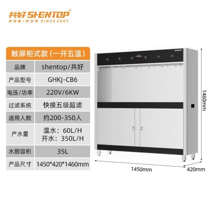 商品名称:共好触屏柜式白钢款饮水机(一开五温) GHKJ-CB6
