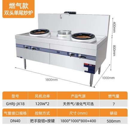 商品名称:共好燃气双头单尾小炒灶(经济款1.0)GHRJ-JX18