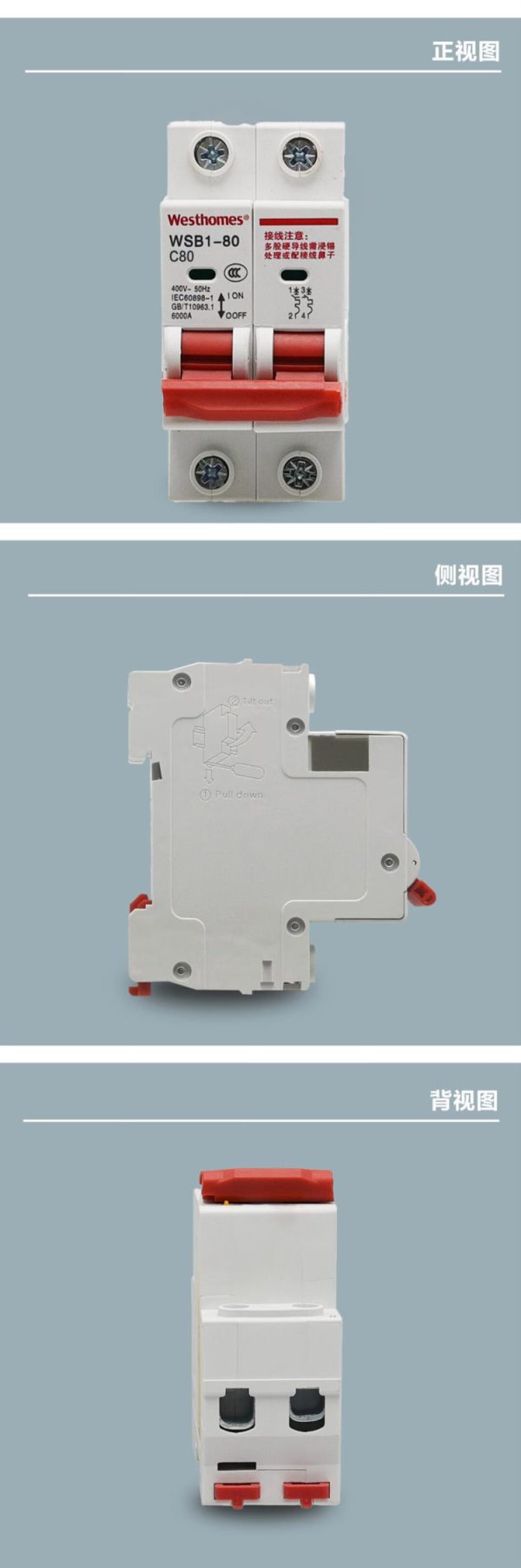 商品名称:西屋(Westhomes)WSB1-80 2P C80A 空气开关 小型断路器(单位:个)