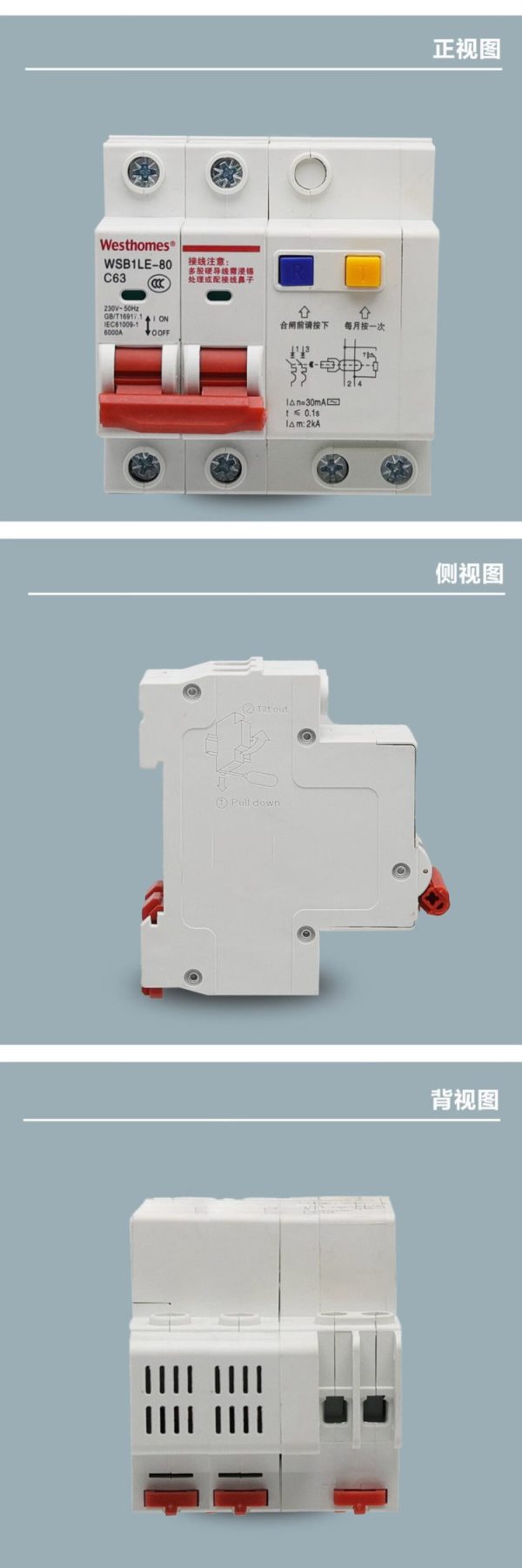 西屋(Westhomes)WSB1LE-80 2P 63A 空气开关 小型漏电断路器(单位:个)
