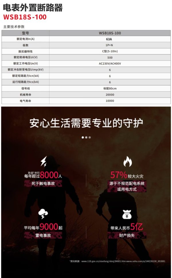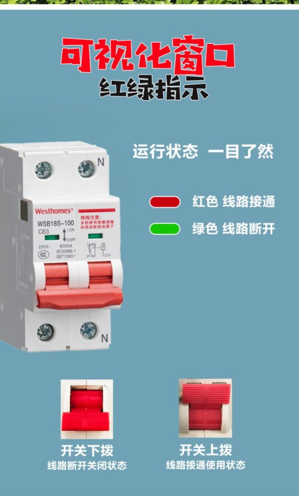 商品名称:西屋(Westhomes)WSB18S-100 1P+N 63A 空气开关 电表外置断路器(单位:个)