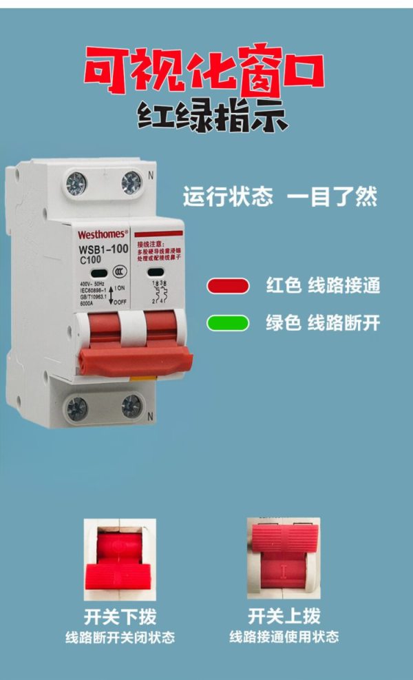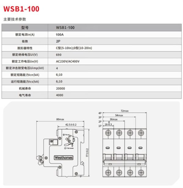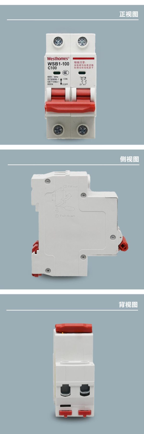 商品名称:西屋(Westhomes)WH1-100 2P 100A 空气开关 小型隔离开关(单位:个)
