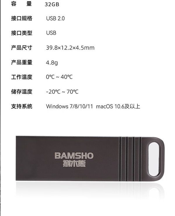 商品名称:捌木熊GJC-F00007金属普通U盘32G(单位:个)