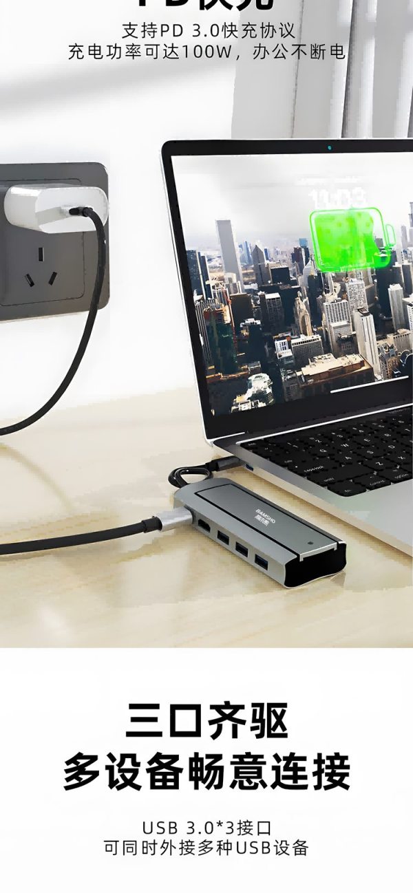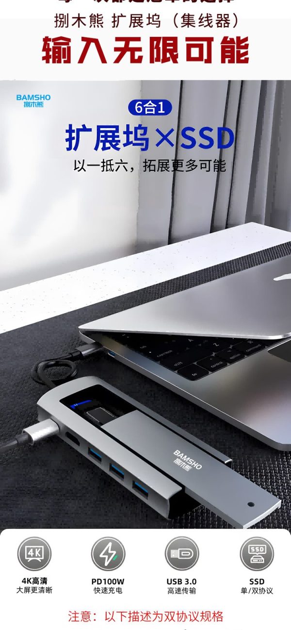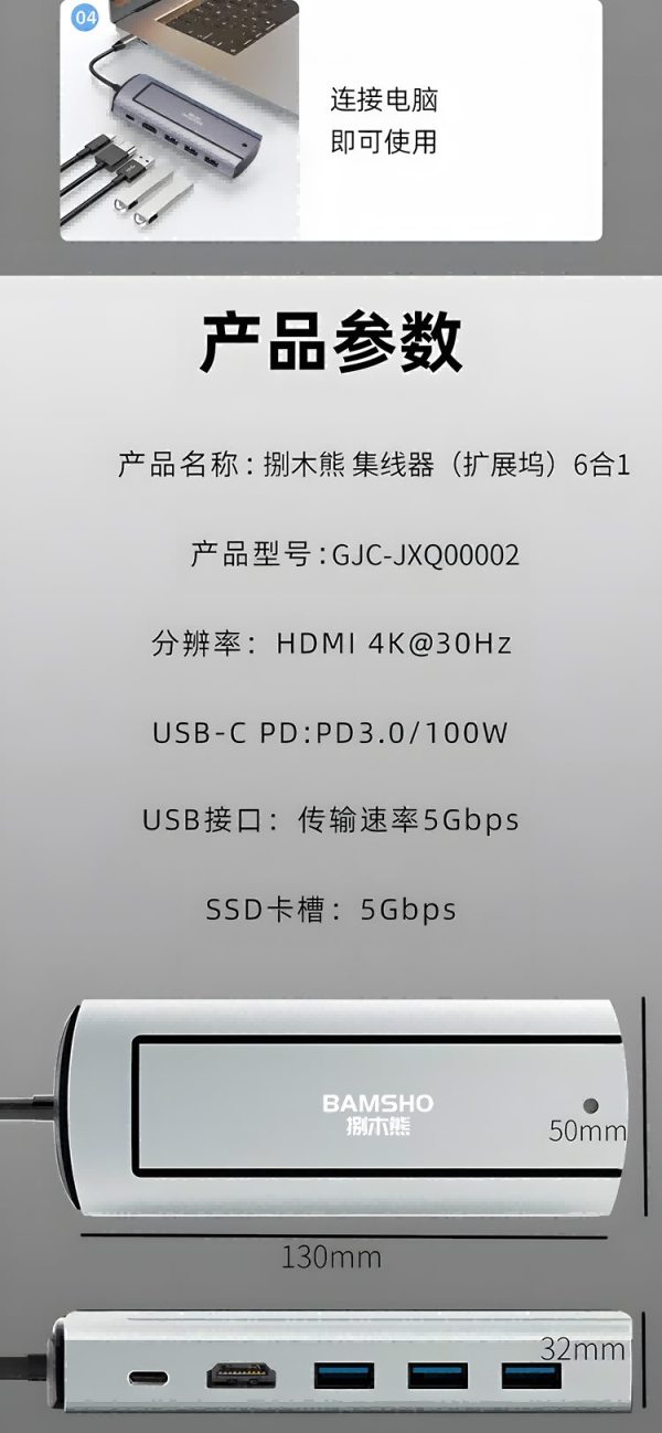 商品名称:捌木熊 GJC-JXQ00002 集线器(扩展坞)6合一(单位:个)银灰色